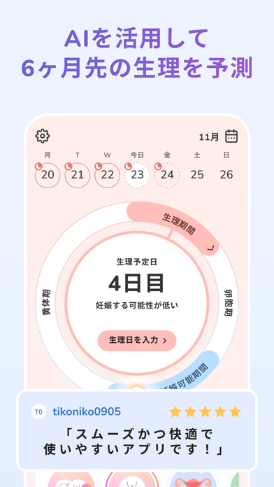 AI機能で生理周期や妊活タイミングを解析! 生理のサポートはおまかせ