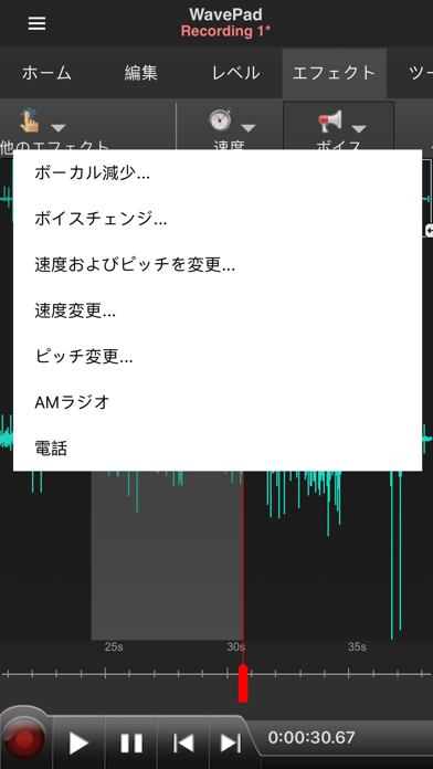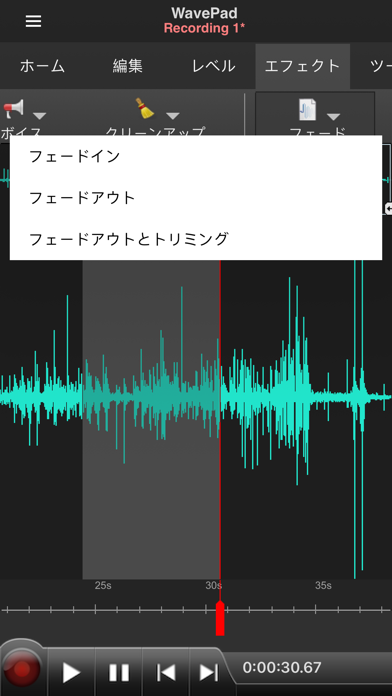 - 録音した音声のファイルを開き、波形を表示して編集・加工できるアプリ