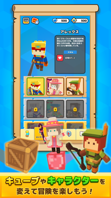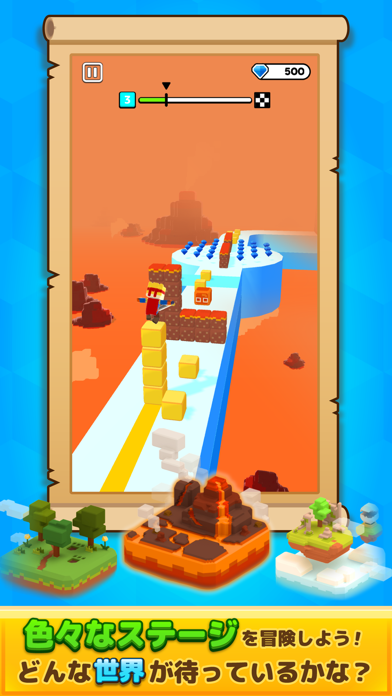 ステージ内にあるキューブを回収し、ゴールを目指していくアクションRPGです。本アプリはキャラクターを左右に動かすだけの簡単操作。シンプルな操作性ですが、動くモンスターや壁などのギミックも豊富なため、キャラコンも重要です。