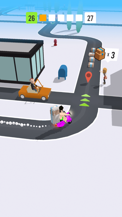 障害物を避けながら、バイクで荷物を届けるアクションゲーム。操作感はとてもシンプルで、画面長押しで走るか止まるかを切り替えるだけ。カーブやルート選びは自動でやってくれます。
