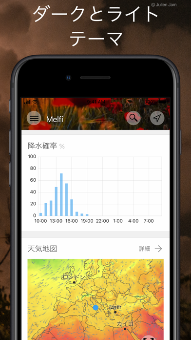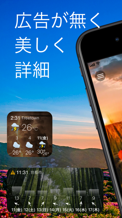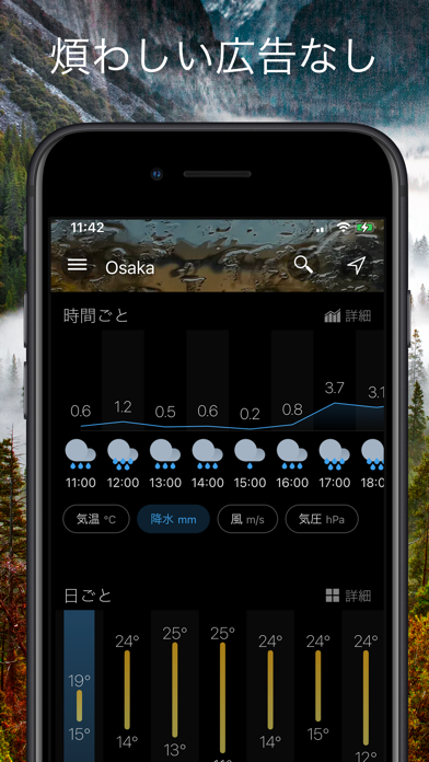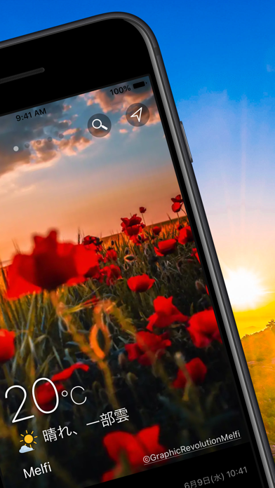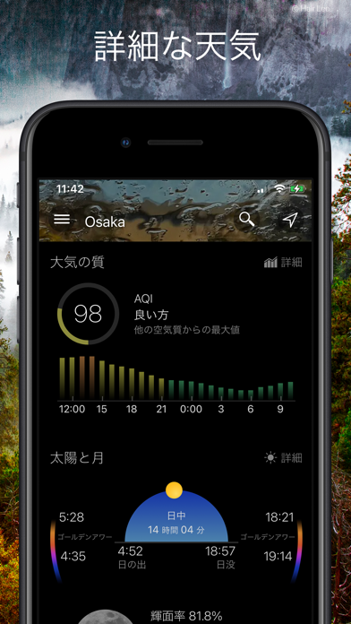 - 現在地の天気を美しい写真で確認でき、デザイン性に優れている