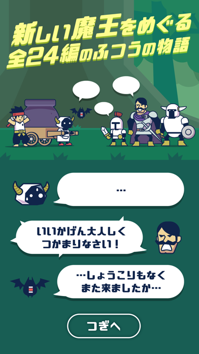 平和と料理が好きな魔王になって、王国兵を倒すパズルRPG。同じ食材同士を組み合わせるだけの簡単操作なので、ゲーム初心者にもぴったり。