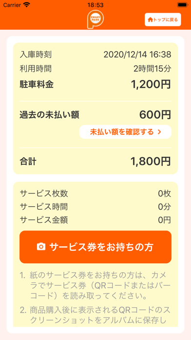 店舗・施設で受け取った駐車サービス券も、アプリで簡単に読み取ることが可能です。QRコードやバーコードをスマホでスキャンするだけで割引が適用され、お得に駐車料金を支払えます。