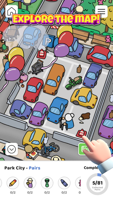 画面下部に表示されているアイテムを、イラストの中から探していきましょう。見つけたアイテムはタップで回収。一定数集めると、新しいエリアやステージがアンロックされていきます。