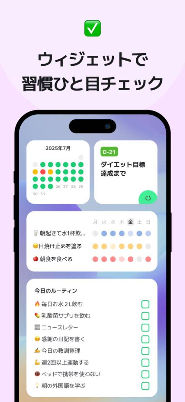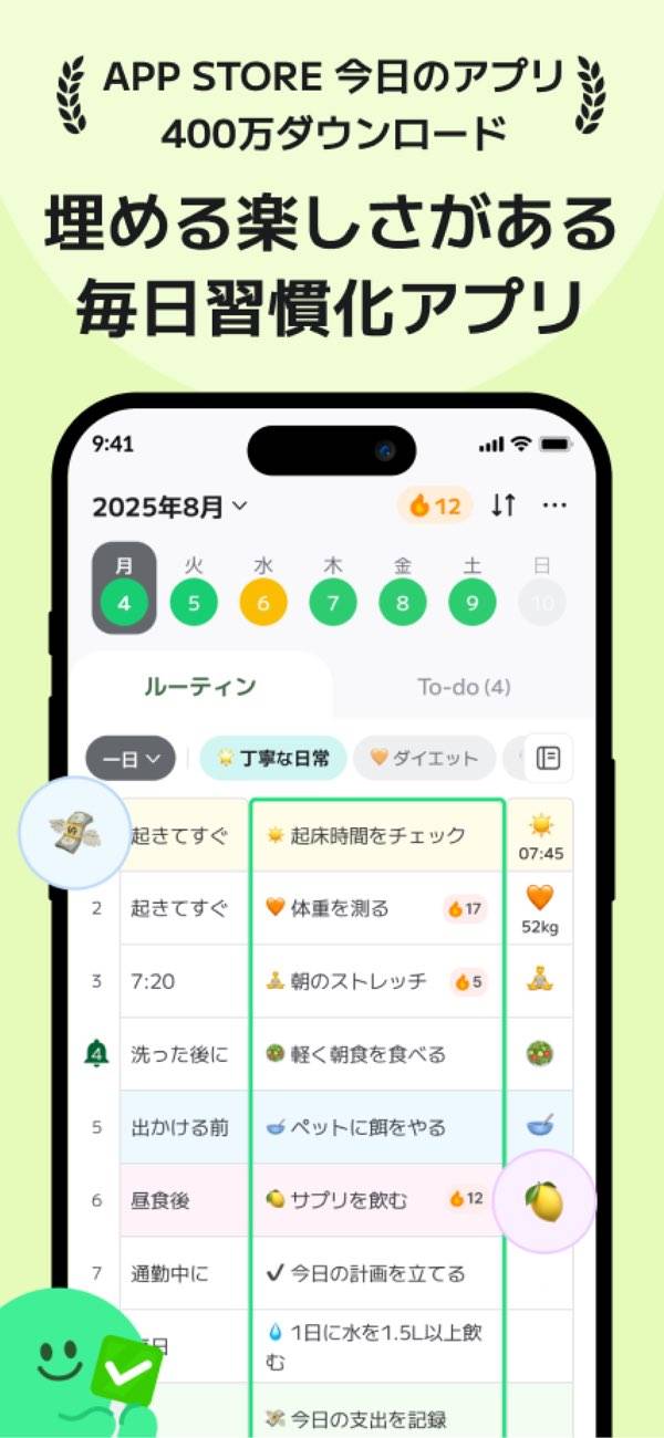 - 習慣化を強力サポート! ToDoリストからルーティン、日記機能も