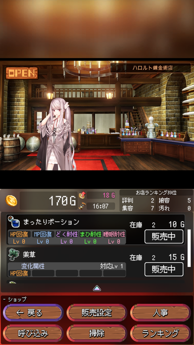 アルケミストとして、自分の店を大きくしていく経営SLGです。素材を仕入れてそのまま売るもよし、ポーションを錬成して納品するもよし。さまざまなやり方で店を繁盛させていきましょう。