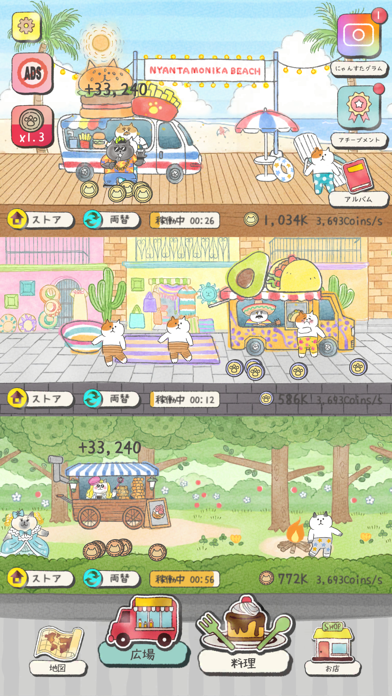LINEスタンプで人気の「ごろごろにゃんすけ」のパズルゲーム。同じ料理を合体(マージ)させ、新しいメニューを開発していきましょう。手描き風のデザインとのんびりしたBGMがほっこりとした気分にさせてくれます。