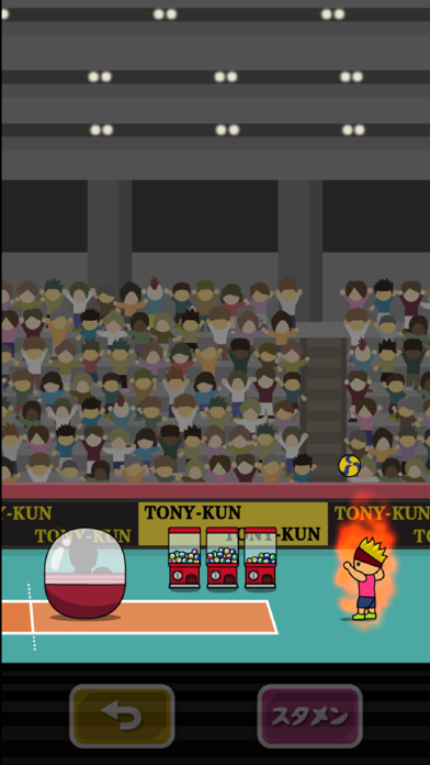 サーブを打ち込んで相手を吹き飛ばすバレーボールアクションゲーム。5人のメンバーで敵のHPを0にできたらステージクリアになります。メンバーはガチャスカウトで獲得可能。最強のメンバーで相手を撃破していきましょう。
