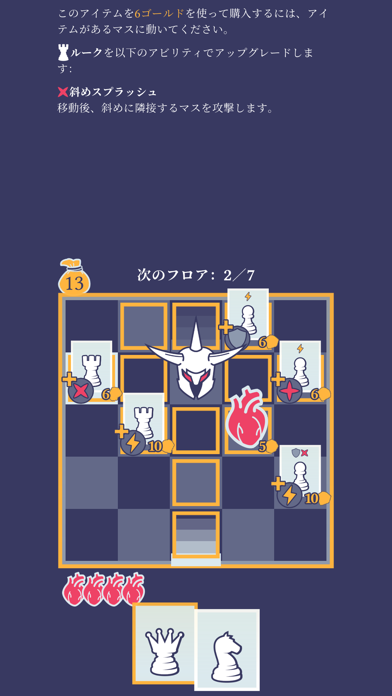 チェスの駒を使い、ダンジョンを攻略していくローグライクゲーム。フロアクリアごとにアイテムの取捨選択をしたり、戦士たちの戦略を考えたりと楽しめる要素が満載です。チェス×ローグライク×ハック&スラッシュが織り混ざった、ほかにはないシステムで楽しめますよ。