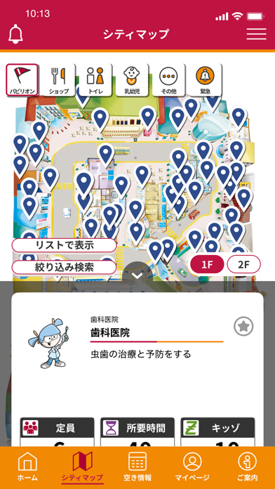 子供向けの職業体験型テーマパーク「キッザニア」のアプリです。館内全体が分かるマップで、来館時のスムーズな移動をサポート。アプリから職業体験施設の空き状況をチェックできるので、効率的な体験学習に繋がります。