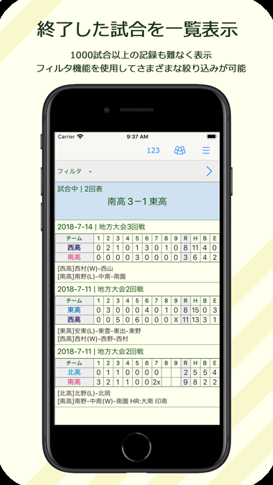 アマチュア野球の記録に使えるスコアブックアプリです。安打や三振といったカンタンな記録から、自責点や防御率などの計算が必要な記録までを、直感的な操作で記録可能。また試合結果や個人成績を一覧で振り返りでき便利。