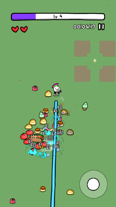 ゆるかわいいキャラクターを操作し、群がる敵を倒していくサバイバルアクションです。操作はドラッグでキャラクターを移動させるだけ。攻撃はつねにオートで行ってくれます。そのためアクションゲーム初心者の人でも、気軽に遊べるでしょう。