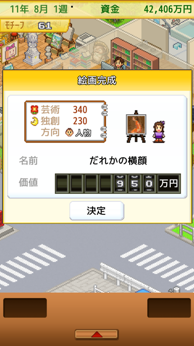 画家と契約してアトリエ再建 ドット絵の画廊経営シミュレーション