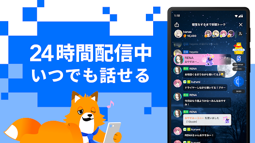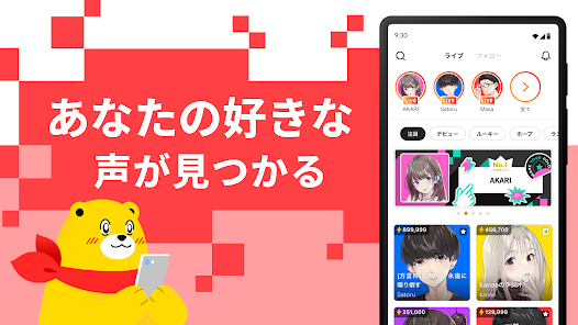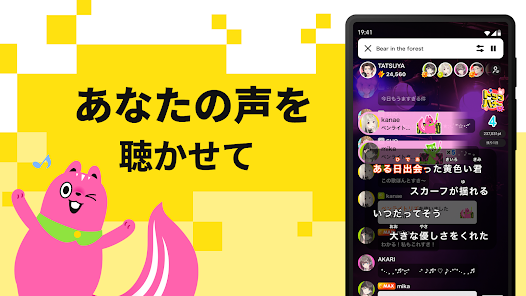 『Pococha』と同じく、DeNAが運営する音声配信に特化したライブ配信アプリです。顔出し不要のため配信のハードルが低く、手軽に始めやすいのが特徴。
