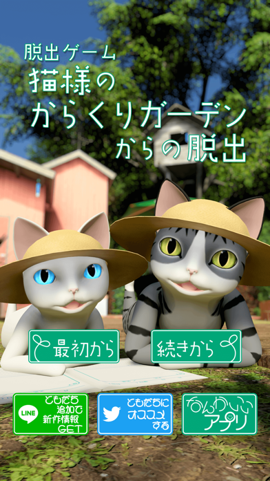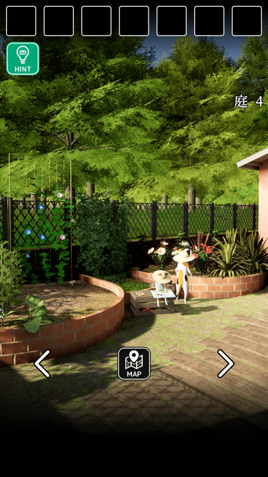 喋る猫達が集う、不思議な庭を探索する脱出ゲームです。おじいちゃん猫が居眠りをしていたり、クローバーを探す猫がいたりと、見ているだけで癒される空間。難易度は低めで、誰でも遊びやすい内容になっています。もし悩んでもヒント機能があるので安心です。