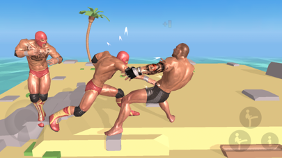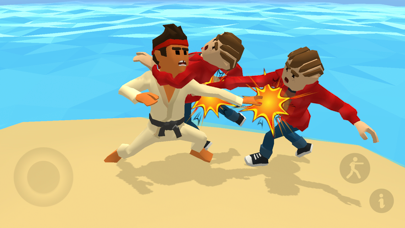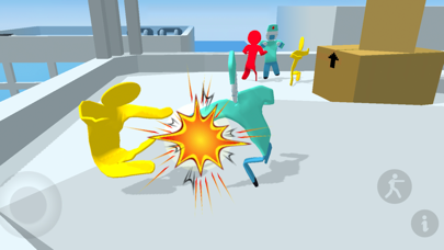 攻撃を繰り出し、他プレイヤーを場外へ落としましょう。バーチャルパッドで移動し、アクションボタンをタップすることで攻撃を繰り出せます。最初は1つしかありませんが、攻撃が一定数相手にあたると新しいアクションボタンが増えていく仕組。