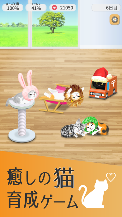本アプリは最大9匹まで一緒に飼うことができます。ショップで購入したキャットタワーでくつろいだり、猫同士でじゃれ合ったりと、多頭飼いならではのキュートな仕草を楽しめるでしょう。