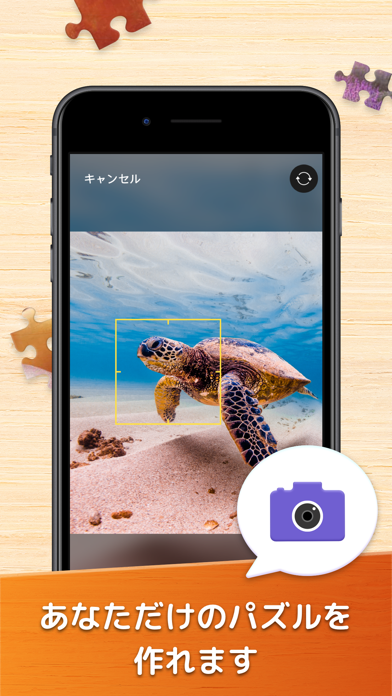 最大900ピースの大ボリュームなパズルで遊べます。画面下部にピースが並んでいるので、つなげられそうなものを選び、画面中央に並べていきましょう。パズルにはヒント機能があり、難しいレベルでも挑戦しやすい仕様になっています。