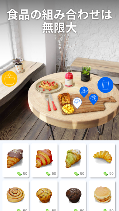 リアルな食事テーブルをデザインして競う、デザインシミュレーションゲーム。インスタみたい。画像がとても綺麗で写真みたいです。