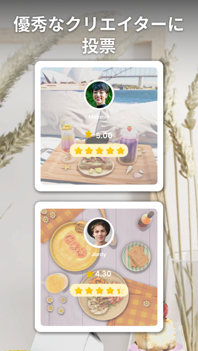 自分が他ユーザーの料理を評価することもできるため、審査員気分も味わえます。