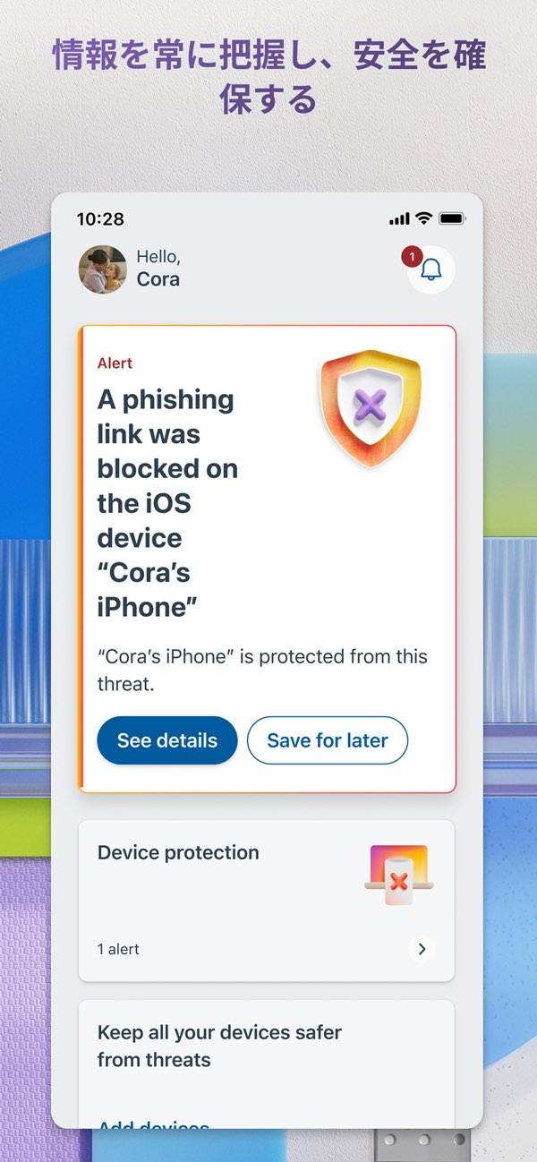 - デバイスの安全性を保つ情報を配信。最新のセキュリティ対策に役立つ