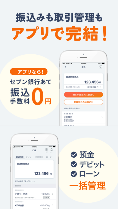 スマホのみで、スピーディーなATMでの取引きが可能です。セブン銀行ATMに表示されるQRコードをアプリで読み取ることで、カードレスでも入出金ができます。セブン銀行ATMなら毎日7時~19時の間、入出金の手数料が無料なのもメリットでしょう。