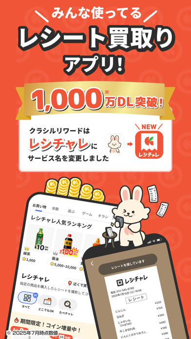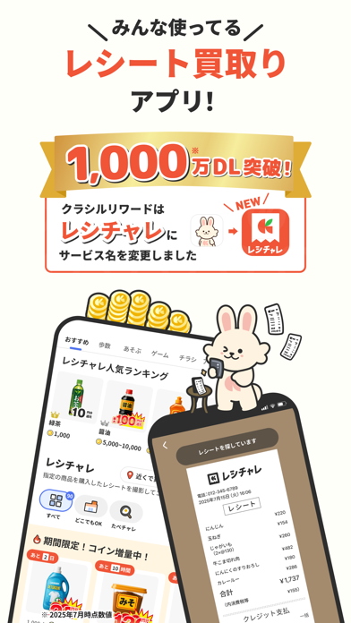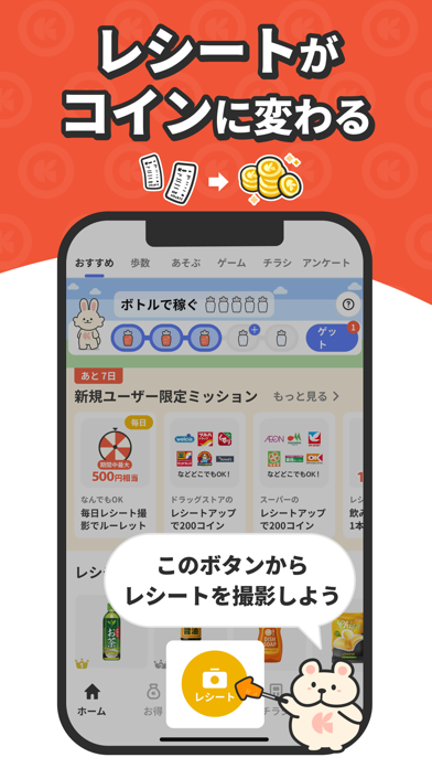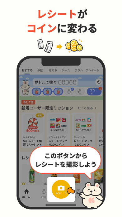 - レシートを撮って送るだけでコインゲット。買い物のついでが無駄にならない