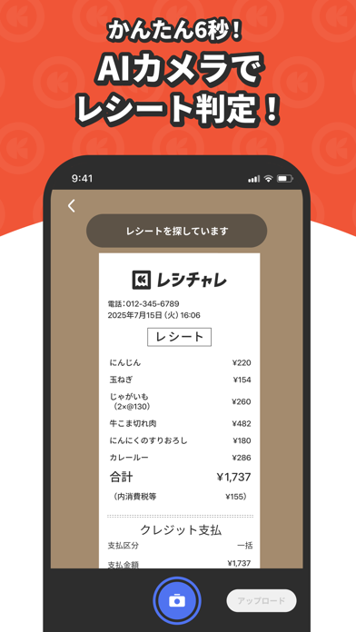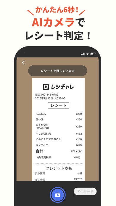 特にレシートの写真は、5枚以上は次の日にも持ち越せるので、買い物日にばらつきのある私には助かる機能です。