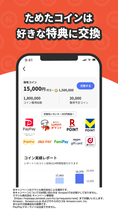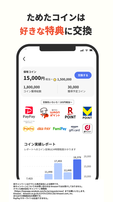 コインをためてポイントに交換できる