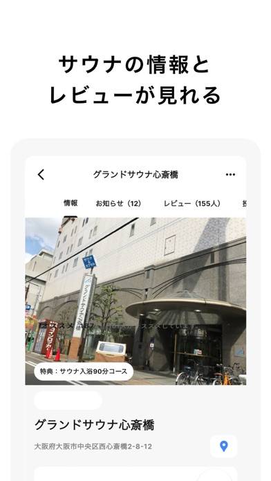 - サウナ施設を検索すると、詳細情報をGETできる。口コミも充実