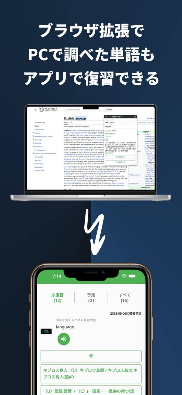 心理学に基づいた記憶法を取り入れた、英和辞書アプリです。単語を調べて「覚える」ボタンを押すだけの簡単な作業でOK。時間を置いて繰り返し復習することで、効率的な記憶をサポートしてくれます。