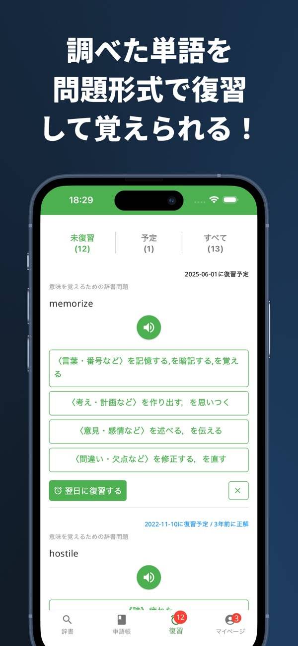 - 反復学習で記憶の定着をサポートしてくれる英和辞書アプリ