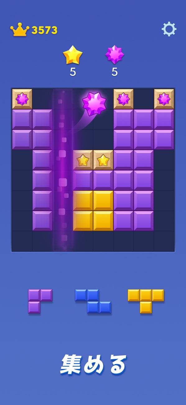 8×8マスの盤面に、ブロックを配置していくパズルゲーム。手元にランダムで出現する3種のブロックを盤面にひたすら置き続けます。タテまたはヨコ1列を埋めるとその列のブロックが消えるので、うまく消し続けてハイスコアを目指しましょう。