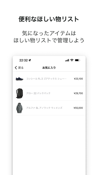 カナダのアウトドアブランド『アークテリクス』の公式アプリ。商品検索時は、シェルジャケットやパンツなどのカテゴリで検索できるほか、在庫状況も反映できるため、欲しい商品を見つけやすいです。さらに会計時はお得になるポイント還元も。再入荷やセール情報をプッシュ通知もあり、狙っていた商品の買い逃しを防げます。