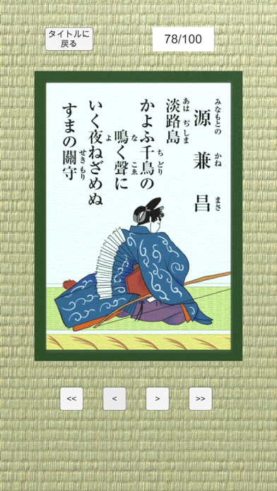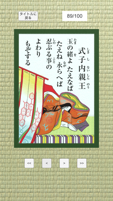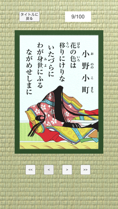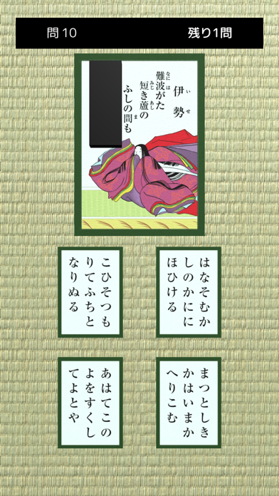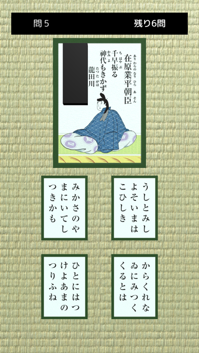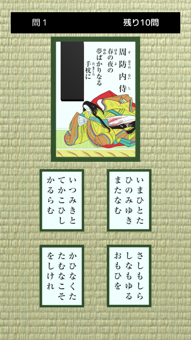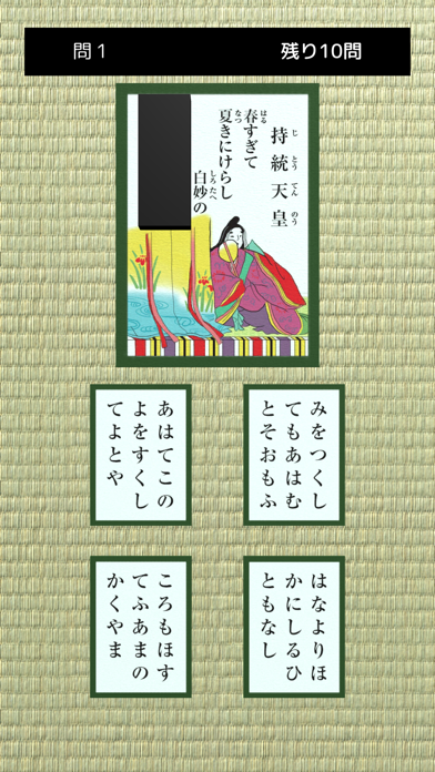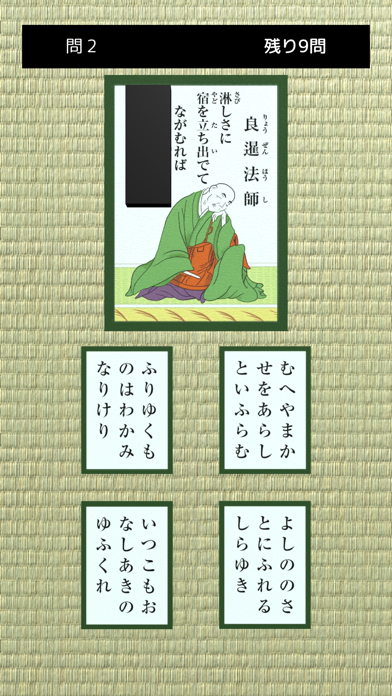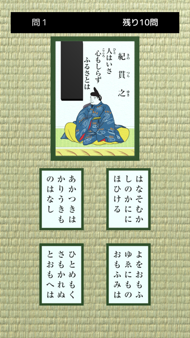- 4択問題を解いていく形式。百人一首の暗記をいつでもどこでもできる