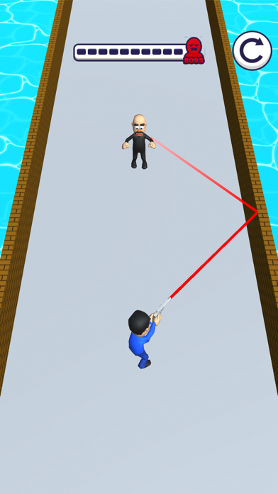銃を放つ前に銃弾がどこを通るのかが赤い線で確認できます。敵の銃弾でも自分が撃った銃弾でも、撃たれてしまうとゲームオーバー。障害物などの跳ね返りには十分注意しましょう。