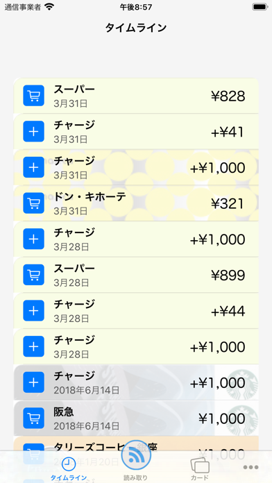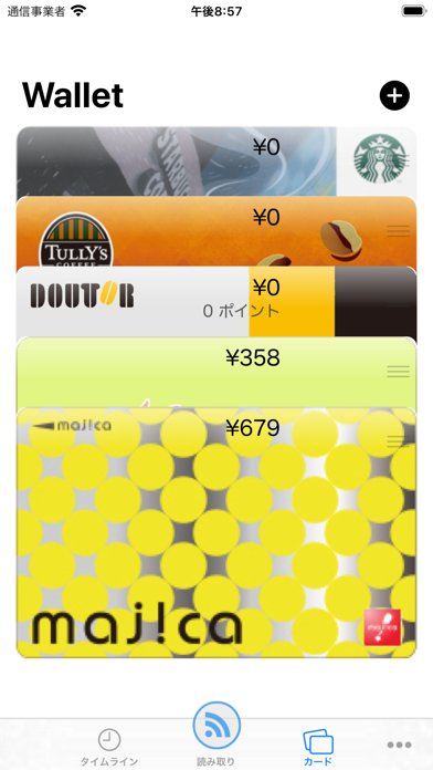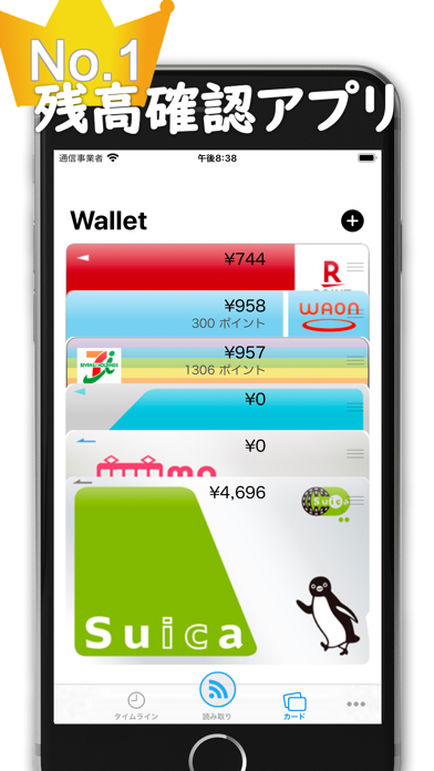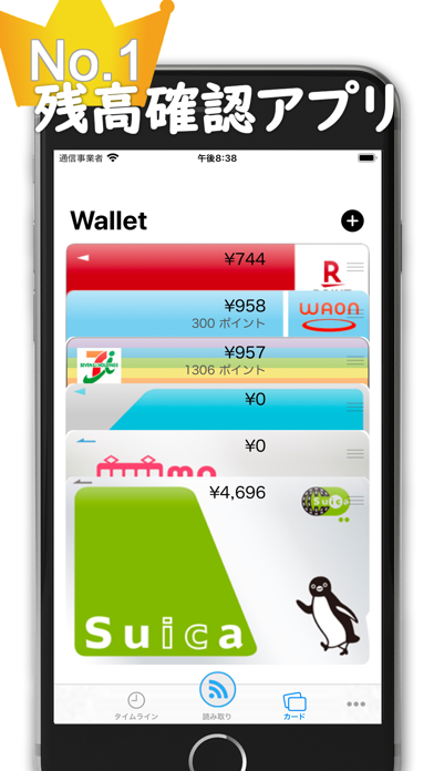 - 複数の電子マネーカードを一括管理。残高の自動更新にも対応