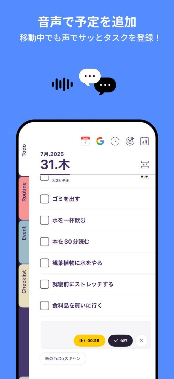 - 毎日続けたいルーティンリストの登録ができて、やり忘れ防止に