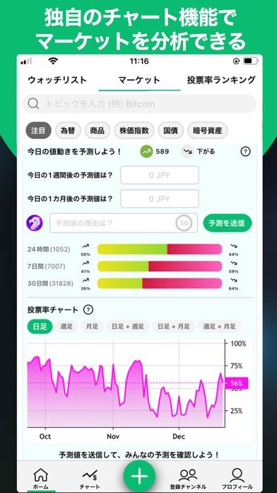 投資を始めましたが、知識が不足していたので何が正しくて何が間違っているのかわかりませんでした。そこでこのアプリを使ってみたところ、経済情報から価格の変動を予想している人が多くいました。どのような投資行動しているのか参考にしながら、私も投資しています。
