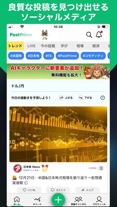 経済や金融に関する投稿が閲覧できます。バッジでその投稿者の信頼度もわかるのがうれしいポイント。特定のクリエイターのチャンネルを登録することもでき、お気に入りのクリエイターから有益な情報を取得できます。