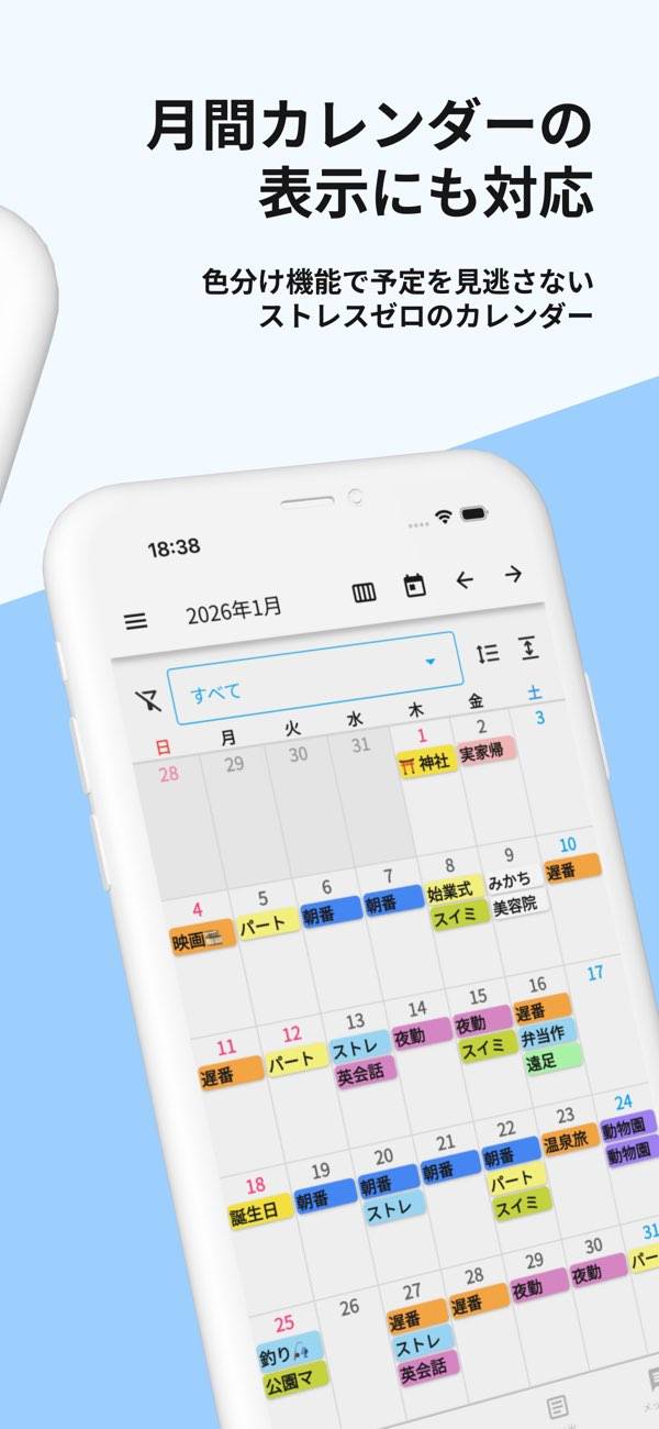 | 表示単位 | 月間表示と縦スクロールで操作できるリスト表示に対応しています。 |