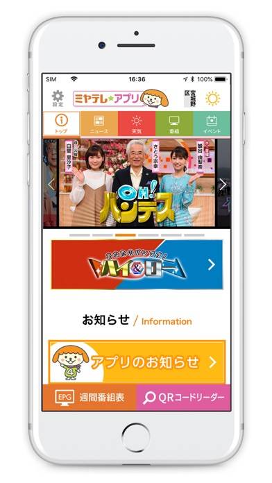 ミヤギテレビの番組情報が充実しています。週間番組表が見られるほか、番組の動画サイト『ミヤテレMOTTO』にもアクセス可能。また地域密着型バラエティ『OH!バンデス』などの企画に、アプリから参加できるのも魅力でしょう。