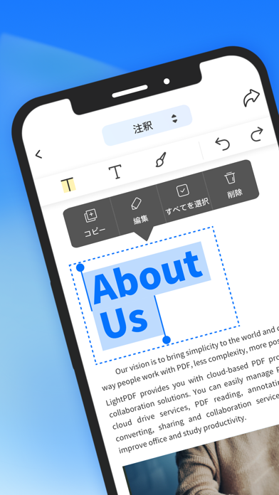 アプリを使えば、クラウド上のPDFをいつでもどこでも編集ができます。主な機能はPDFの表示、注釈付け、署名、共同編集などです。出先で編集したいときやファイルをまとめたいときにおすすめ。アプリを使ってPDFをより手軽なものにしませんか?