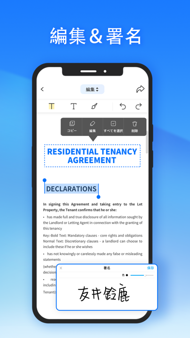 - 書類の編集や署名ができる。PDFをアプリでまとめて管理