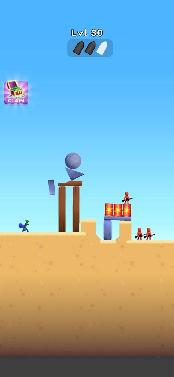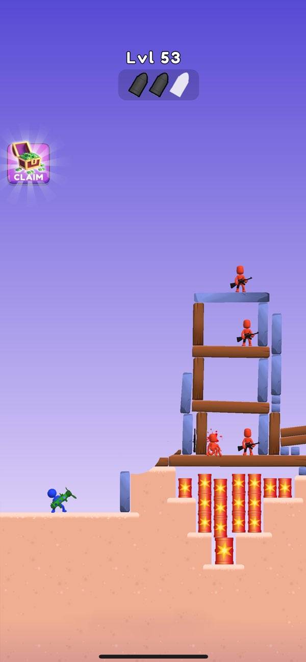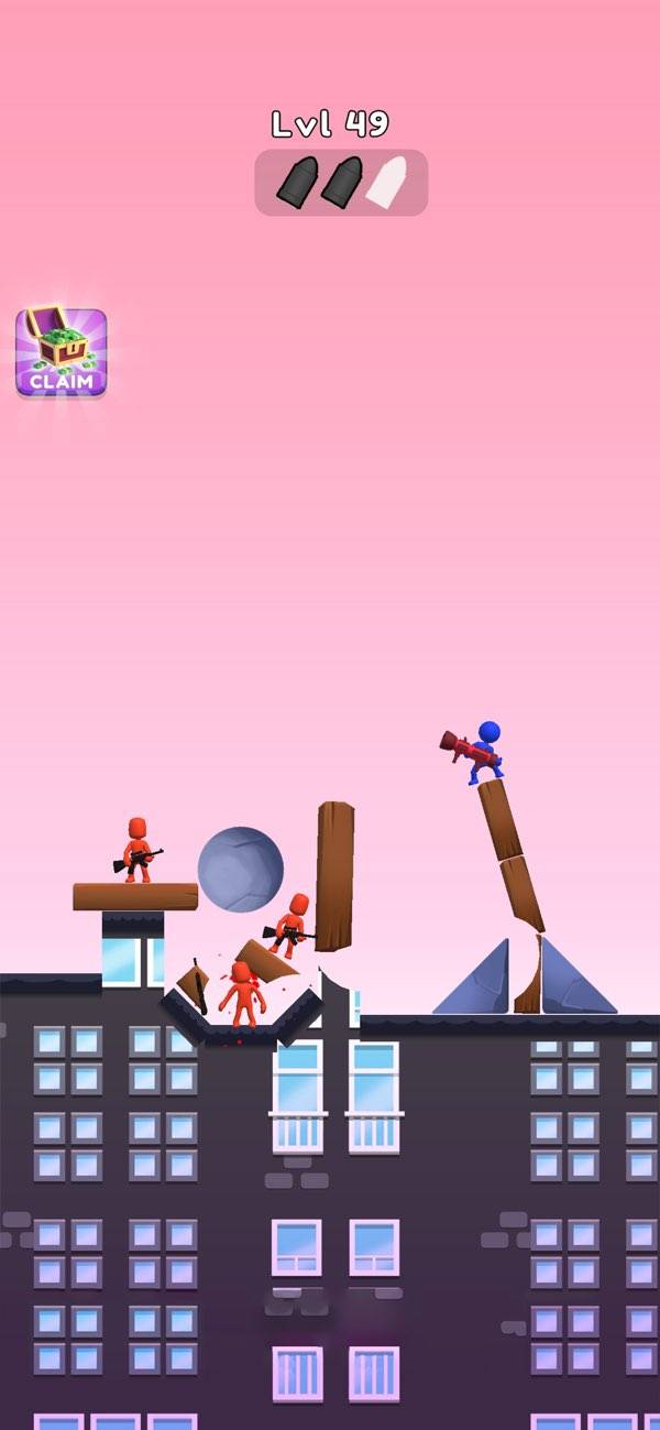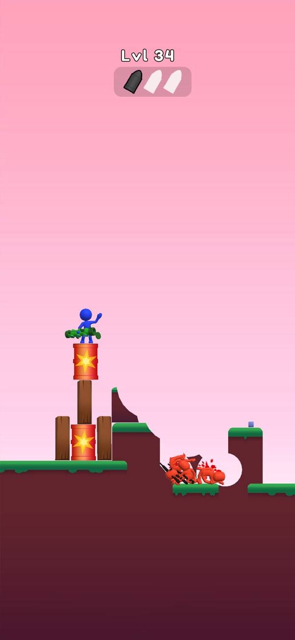 バズーカを撃って敵を倒していくカジュアルシューティングです。操作は画面を長押しして、狙いを定めたら指を離すだけ。片手でも遊べるのでちょっとしたスキマ時間に遊べるのも嬉しいポイントです。