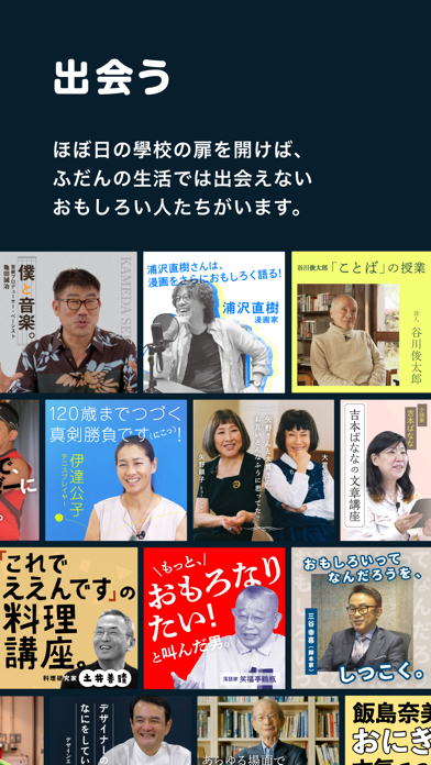 普段なかなか出会う機会のない人たちの、本音トークを楽しめます。スポーツ選手から漫画家、お笑いコンビまで、さまざまなジャンルの授業を配信中。人の経験や知恵、失敗を通して、新しい学びを得てみてはいかがでしょうか。