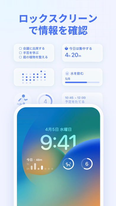 ウィジェットのテンプレートが数多くあります。自分の必要な情報だけをウィジェットにしてホーム画面に表示。アプリを開かなくても今日やるべきことなどが目に入り、仕事を効率化させられます。