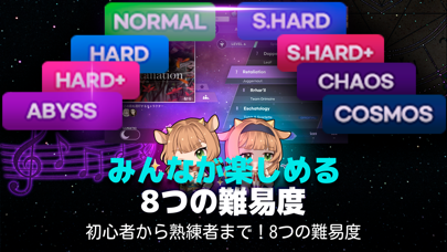 さまざまなキャラクターが秘めたストーリーを楽しめます。キャラクターをメインに設定して楽曲をクリアすると経験値を獲得。一定まで貯まると、ストーリーを開放できるようになります。宇宙をめぐるファンタジックな世界観を楽しみましょう。