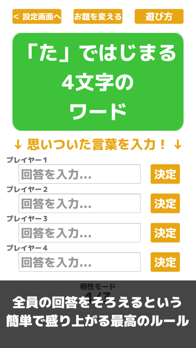 ゲームの設定で文字数やお題の種類を細かく決めることで、よりみんなの答えが揃いやすくなるでしょう。