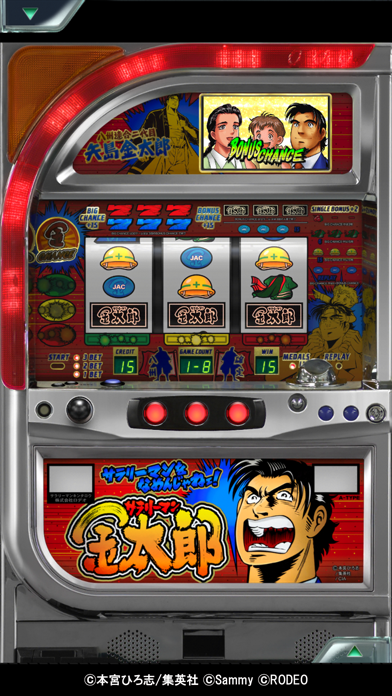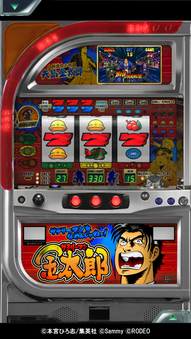 - 今はなき伝説のスロット『サラリーマン金太郎』が遊べるアプリ